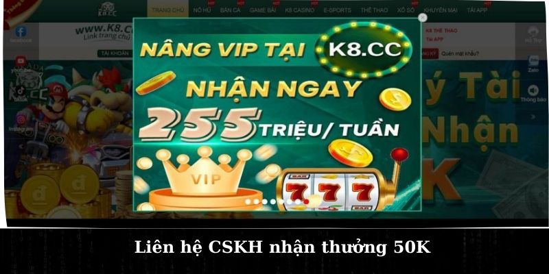 Liên hệ CSKH nhận thưởng 50K