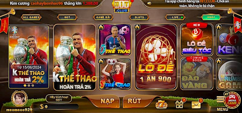 Rút tiền: Sau khi thắng cược, bạn có thể rút tiền về tài khoản ngân hàng hoặc ví điện tử đã liên kết. Hit Club cam kết xử lý giao dịch rút tiền nhanh chóng và an toàn.