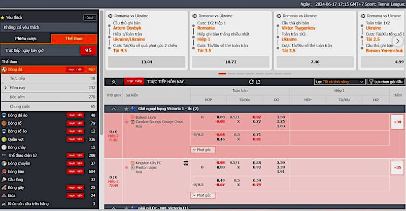 Cược tài xỉu: Bạn đặt cược vào tổng số bàn thắng trong trận đấu sẽ cao hơn hay thấp hơn mức nhà cái đưa ra. Loại cược này phù hợp với những người chơi ưa thích phân tích thống kê.